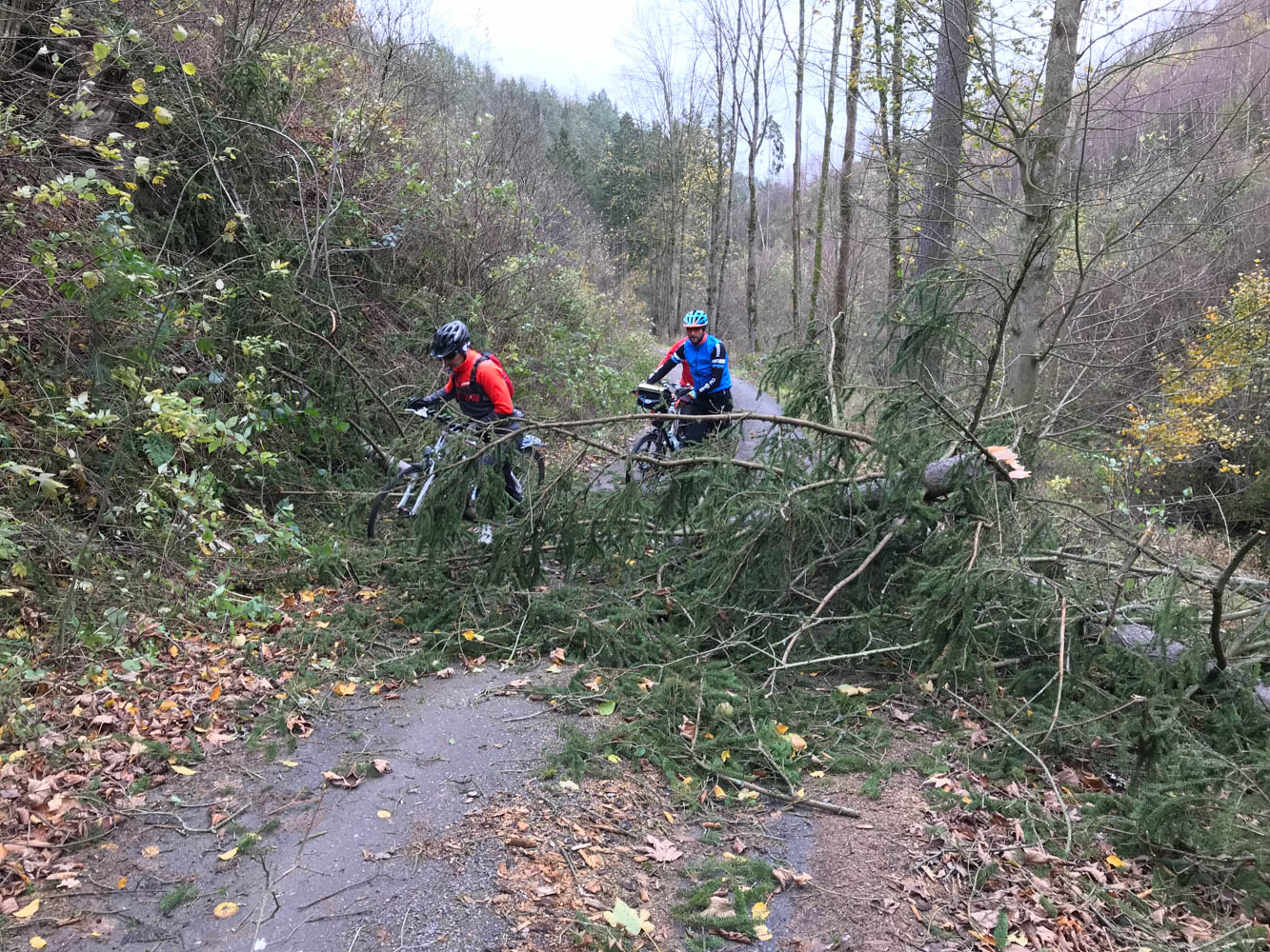 Pause, da keine Fähre fuhr und die Wege wegen umgestürzter Bäume
